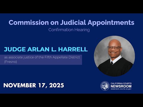 The Commission on Judicial Appointments on November 17, 2025 confirmed the appointment of Judge Arlan L. Harrell as associate justice of the Fifth Appellate District (Fresno).
